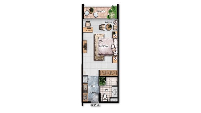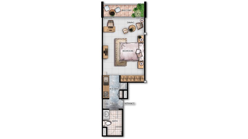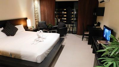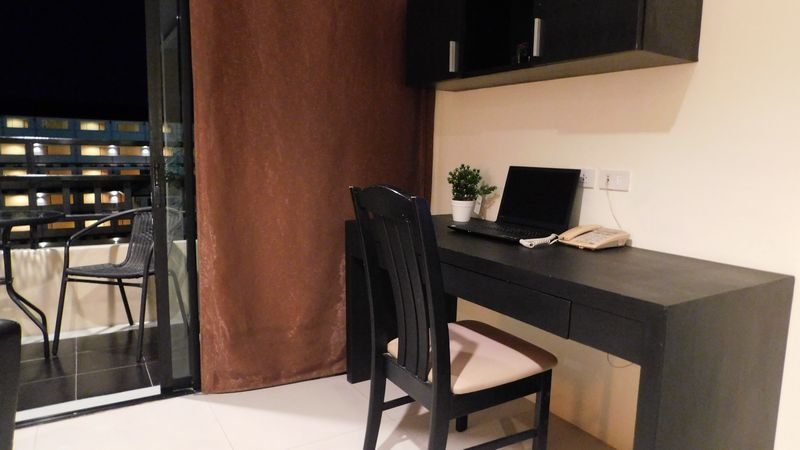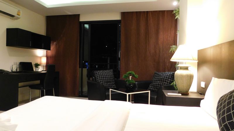 MAXXCENTRAL Studio Apartments Deluxe (39 Sq m) are located above the main entrance of the building, facing the west, Third Road and Central Festival Beach. The unique, long-shaped room layout allows an additional entrance space.
