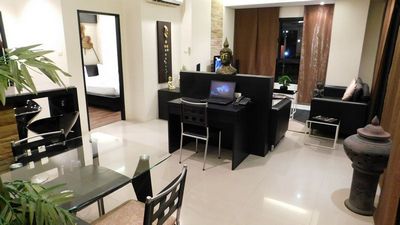 MAXXCENTRAL 1-Bedroom Suites are spacious. A total size of 78 Sq m guarantees a comfortable stay - short-term or long-term. All suites feature a separate fully air-conditioned living- and bedroom, both equipped with modern Flat-Screen-TVs. The big corner balcony located to the back side of the building facing the North-East above the swimming pool or the East-West is accessible either from the living area or from the bedroom.